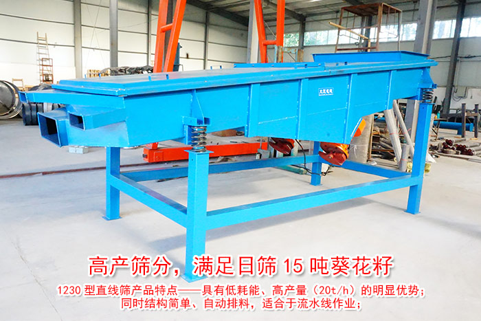 經(jīng)常有用戶咨詢我們小編,說想要購買每天可以篩分15噸葵花振動篩,但是不知道用哪種篩分機?價格又是多少錢?下面大漢小編為大家具體介紹一款可以滿足15噸葵花籽日篩的——1230型直線篩