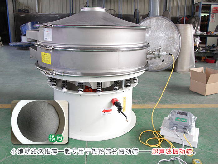 錫粉是一種有色金屬中開發(fā)利用程度較高的礦種之一,它的粒度規(guī)格有:150μm(-100目)、38μm(-400目)、45μm(-325目)或77μm(-200目)等,它的比重較輕,容易產(chǎn)生靜電問題,所以一般的振動(dòng)篩很難進(jìn)行有效篩分,今天小編就給您推薦一款專用于錫粉篩分振動(dòng)篩——超聲波振動(dòng)篩。