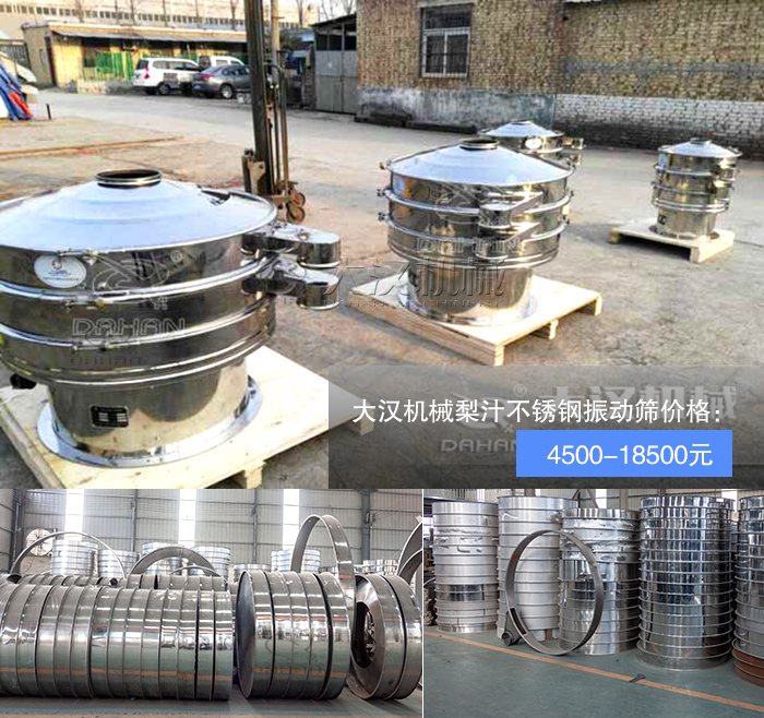 除了以上兩種篩分優(yōu)勢以外,大漢機(jī)械所生產(chǎn)的梨汁過濾不銹鋼振動篩的價格優(yōu)勢,具體如下: