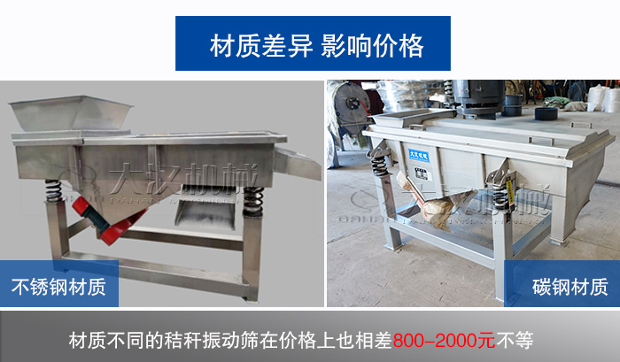 養(yǎng)殖場飼料篩分直線振動篩主要有碳鋼與不銹鋼兩種,材質(zhì)不同的秸稈振動篩在價格上也相差800-2000元不等。