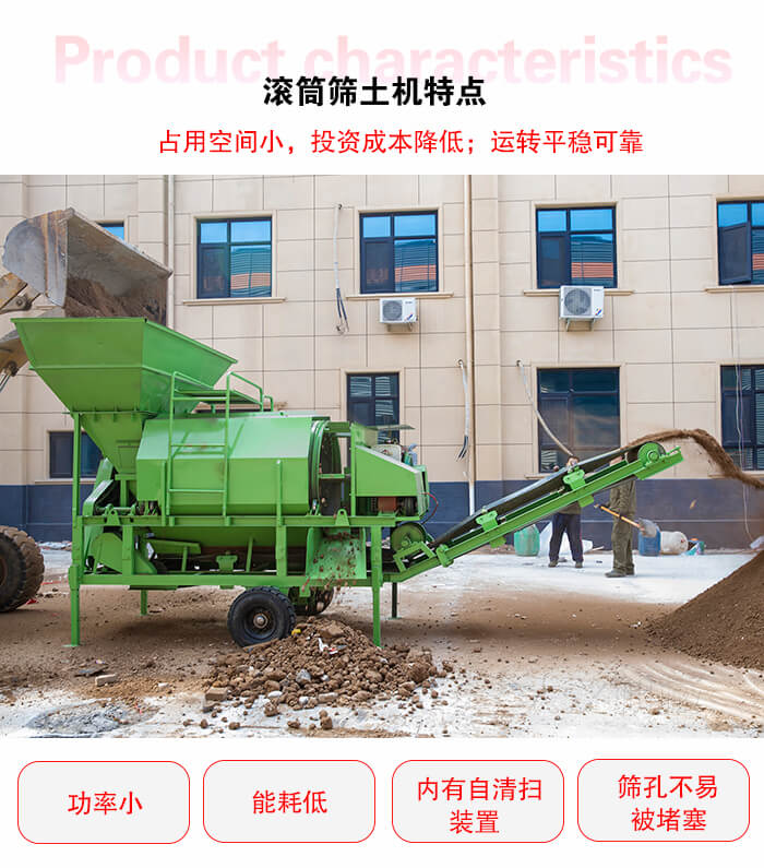 滾筒篩土機是針對于土壤進行篩分的專屬性篩分設(shè)備,針對于土壤中的石子,雜草進行篩分,除雜的作用,幫助一些科研農(nóng)業(yè)篩出優(yōu)質(zhì)細(xì)膩的土壤。該設(shè)備結(jié)構(gòu)與普通滾筒篩結(jié)構(gòu)大致相同。