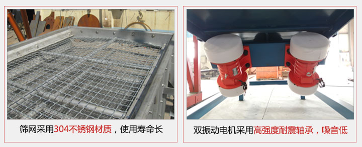 2,雙振動(dòng)電機(jī)采用高強(qiáng)度耐震鑄鐵軸承,使用壽命長(zhǎng),噪音低,易保養(yǎng)。
