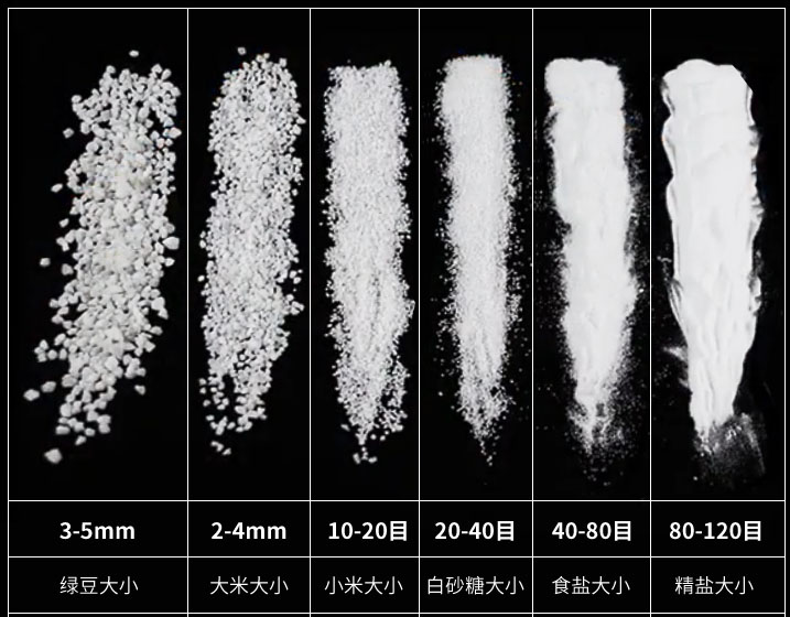 常用規(guī)格有:0.5-1mm、1-2mm、2-4mm、4-8mm、8-16mm、16-32mm、10-20目、20-40目、40-80目、100-120目。
