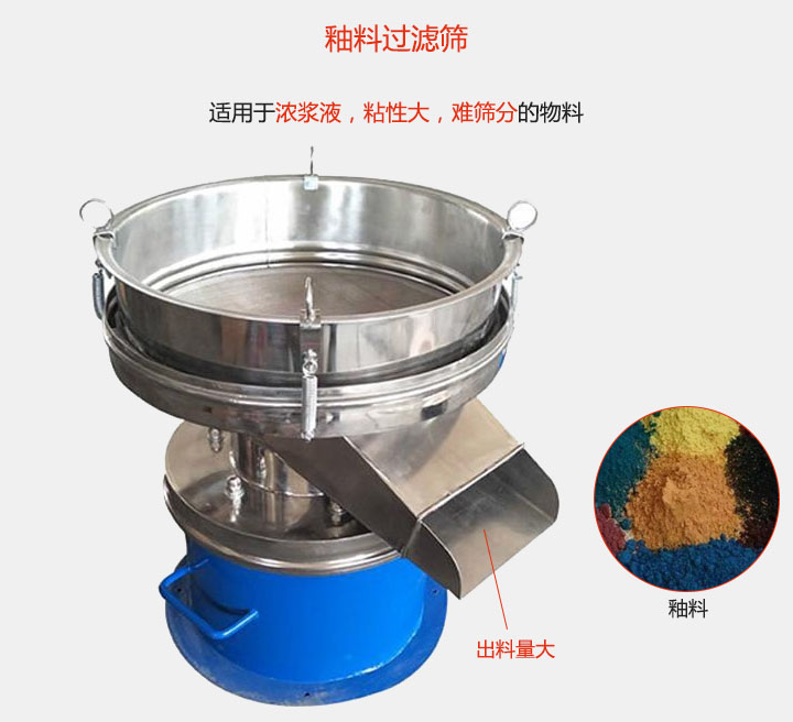 釉料過濾篩適用于:食品,陶瓷,醫(yī)藥,化工,油漆,冶金等行業(yè)廣泛應用。
