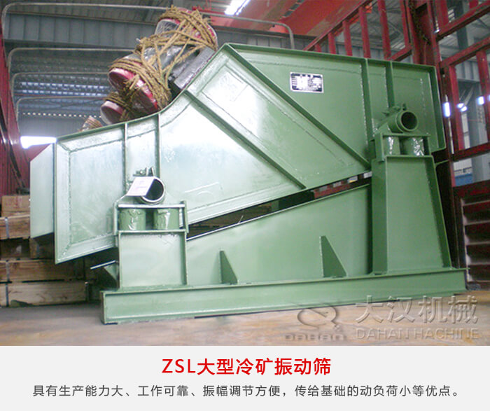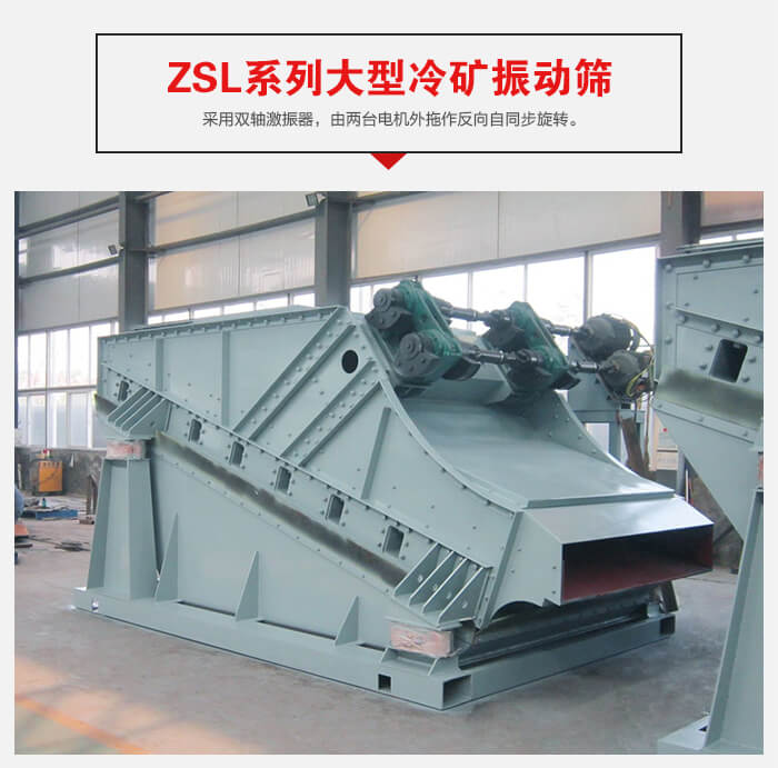 ZSL系列大型采用雙軸激振器,電機不參振,由兩臺電機外拖作反向自同步旋轉(zhuǎn),使篩箱產(chǎn)生較大振幅沿直線方向作周期性往復運動,從而達到篩分目的的一種振動篩設備。這種振動篩具有生產(chǎn)能力大、工作可靠、振幅調(diào)節(jié)方便、傳給基礎(chǔ)的動負荷小等優(yōu)點。