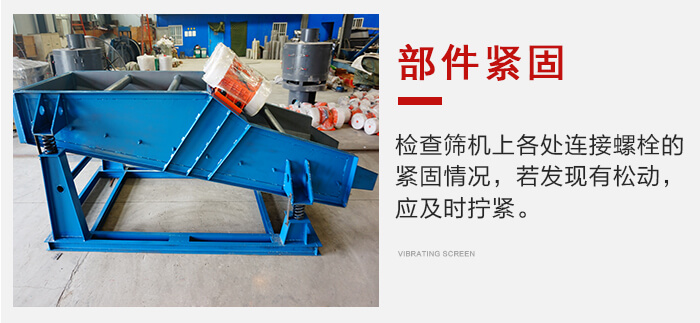 應經(jīng)常檢查篩機上各處連接螺栓的緊固情況,若發(fā)現(xiàn)有松動,應及時擰緊。